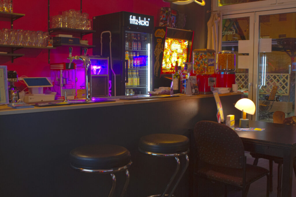 Wir sind Frankfurts erste barrierefreie 90s Retro-Bar! Bei uns kann an 11 Flipper- und Videospielautomaten gespielt werden, möglichst Barrierefrei! Alles in einem gemütlichen 90s Ambiente mit Musik und Deko aus der Zeit. Theke mit vielen alkoholischen und alkoholfreien Getränken, Nachos und Popcorn. Gegründet von zwei Sozialarbeitern, die eine nette Community um sich herum haben wollen.