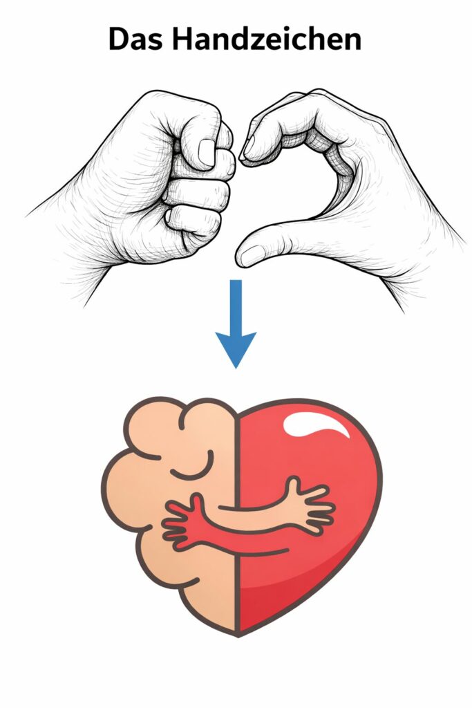 Besonders für Kinder, Jugendliche und Menschen in akuten Belastungssituationen bietet das Zeichen eine Möglichkeit, sich ohne Erklärung mitzuteilen – auch dann, wenn sie selbst noch nicht benennen können, was gerade nicht geht.